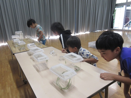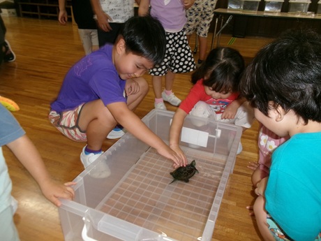 その後は笹井先生が実際に連れてきてくださった何十種類もの虫・亀やカエルなどの生き物と触れ合って遊びました。