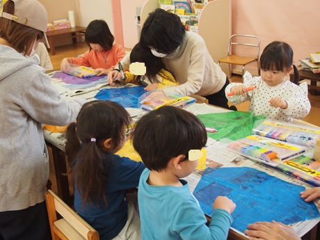 これからも、未就園児と在園児の合同保育を実施し、一緒に楽しい時間を過ごしたいと思います。